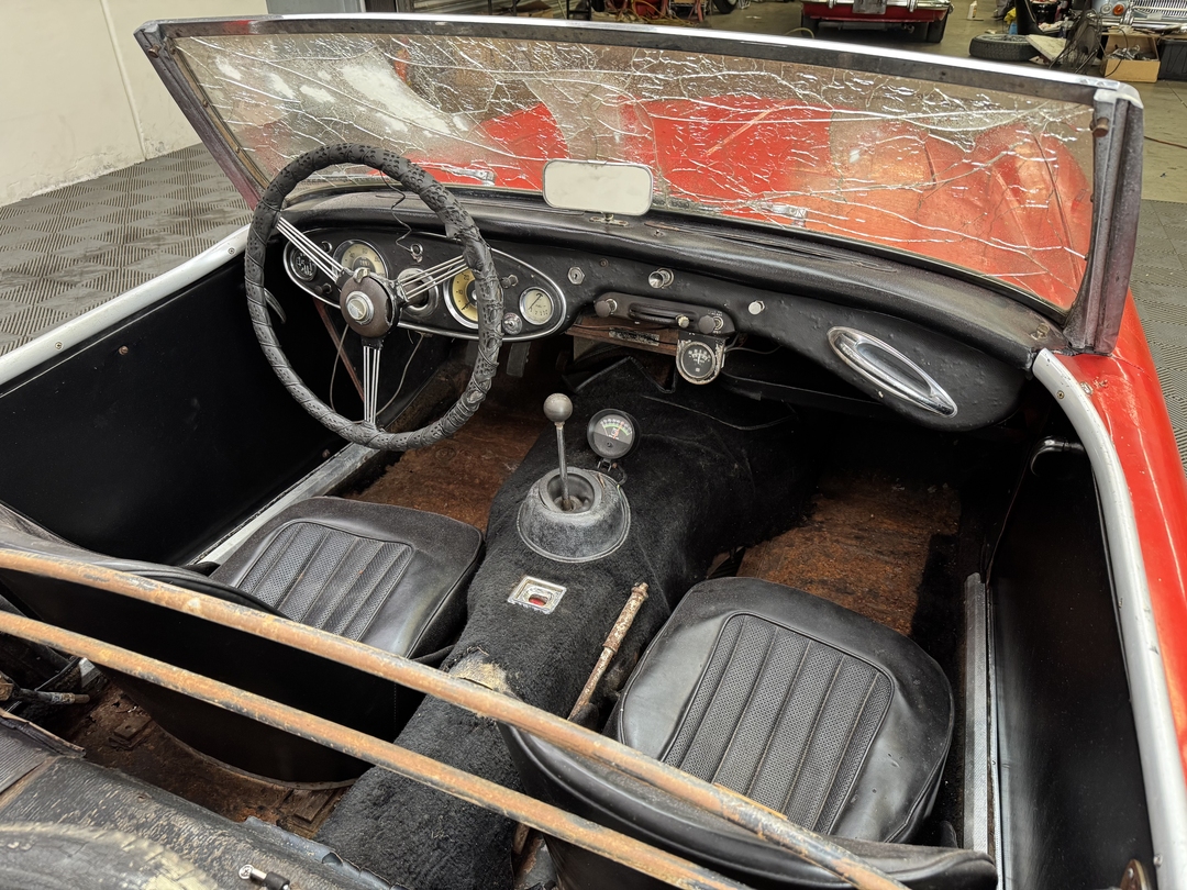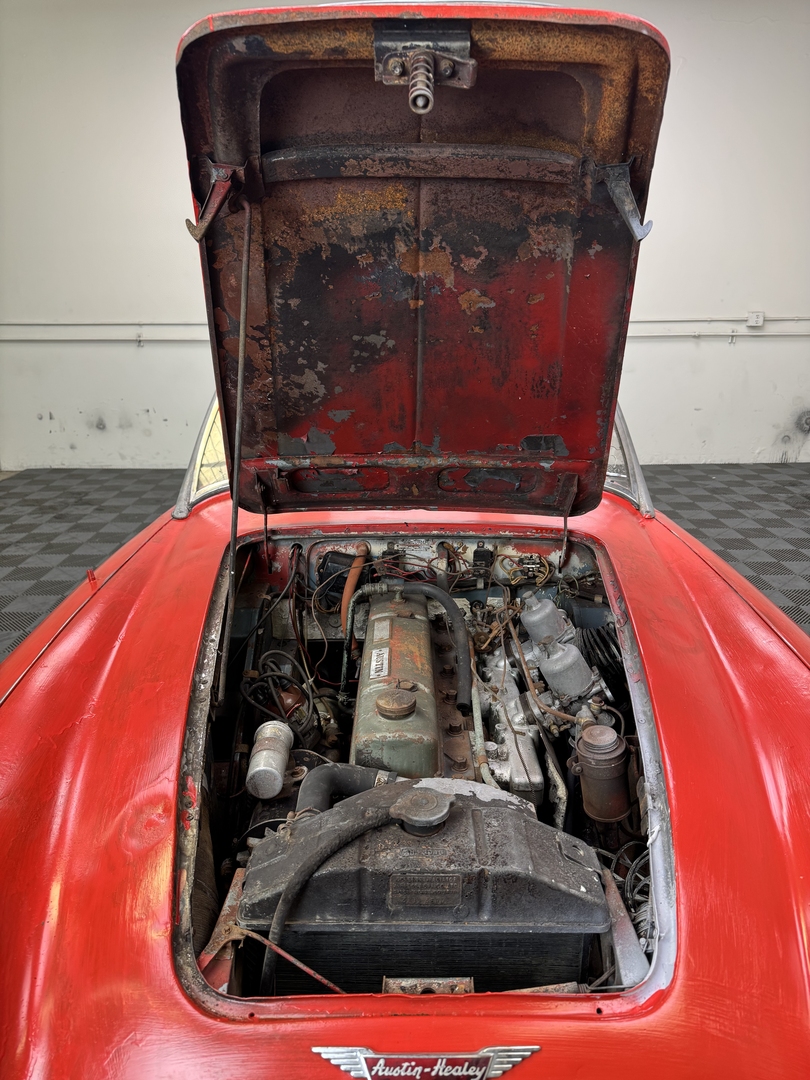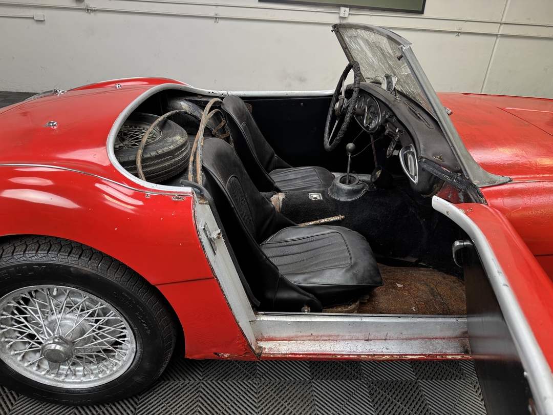 -Very good solid restoration candidate, minor rust repair needed. Excellent panel fit and body gapping. Appears to be accident free. Complete and original car with original body panels all originally finished in Healey Blue. Top frame, sidecurtain set, spare tire. PLEASE SEE WALK AROUND VIDEO.