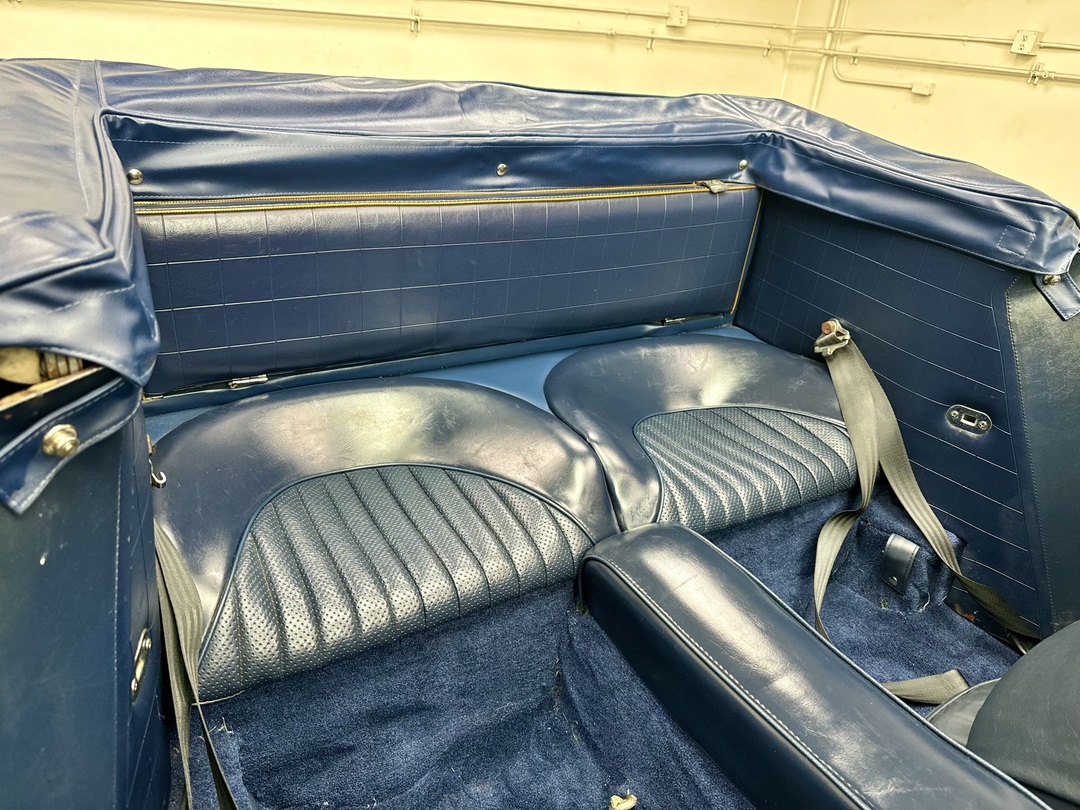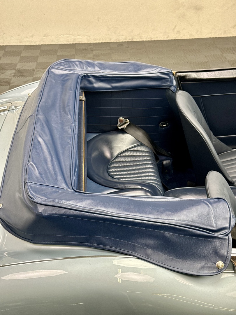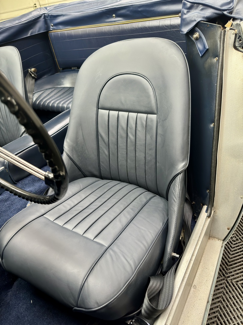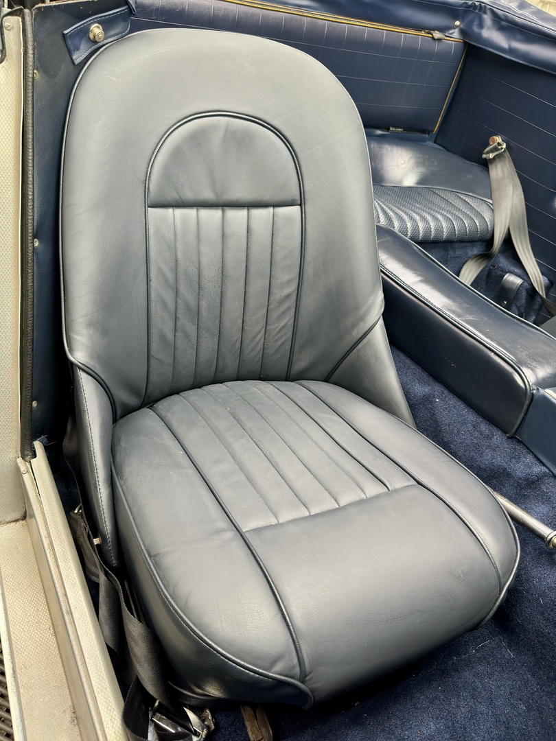 -Kurt Tanner Motorcars has recently carried out the following improvements to include fresh Ivory White painted insert, newly trimmed front leather seats with new foam kit, new navy blue top boot fitted, new radial tire set, Moss cut pile navy blue carpet kit, cleaned/detailed engine bay and undercarriage.