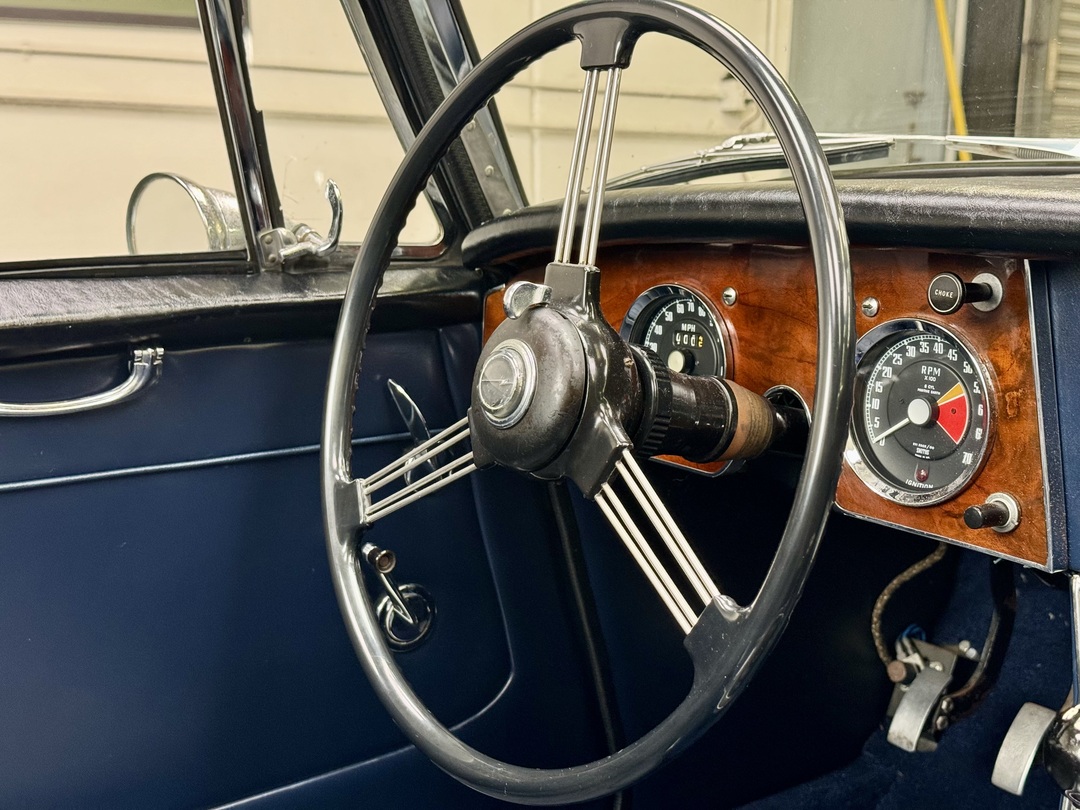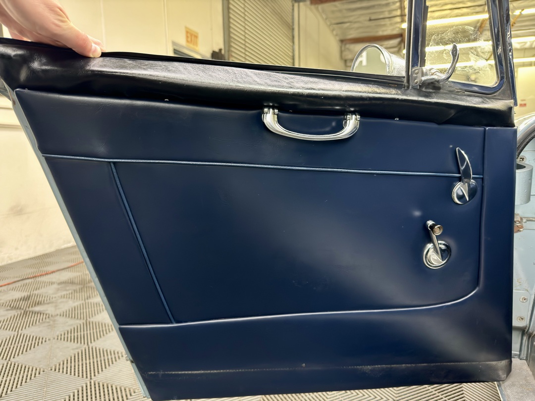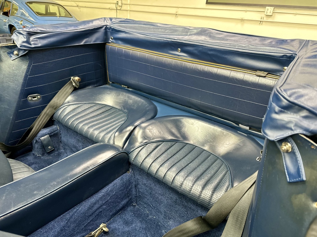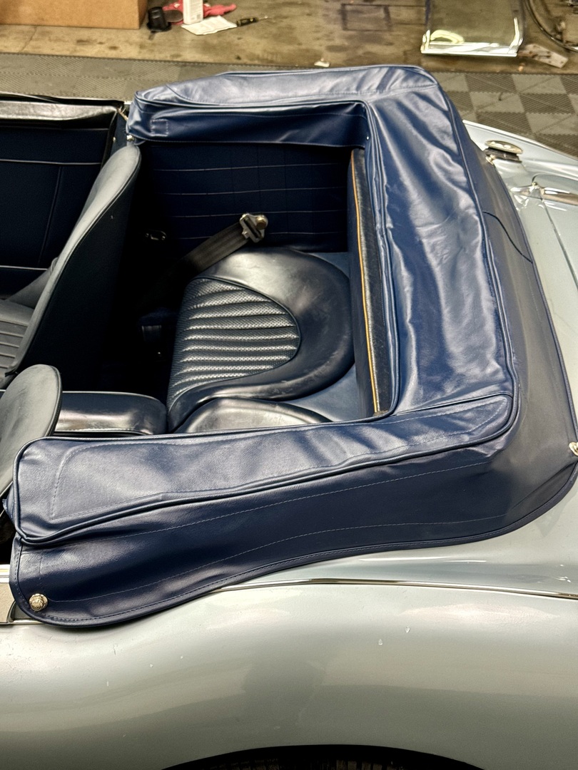 -Kurt Tanner Motorcars has recently carried out the following improvements to include fresh Ivory White painted insert, newly trimmed front leather seats with new foam kit, new navy blue top boot fitted, new radial tire set, Moss cut pile navy blue carpet kit, cleaned/detailed engine bay and undercarriage.