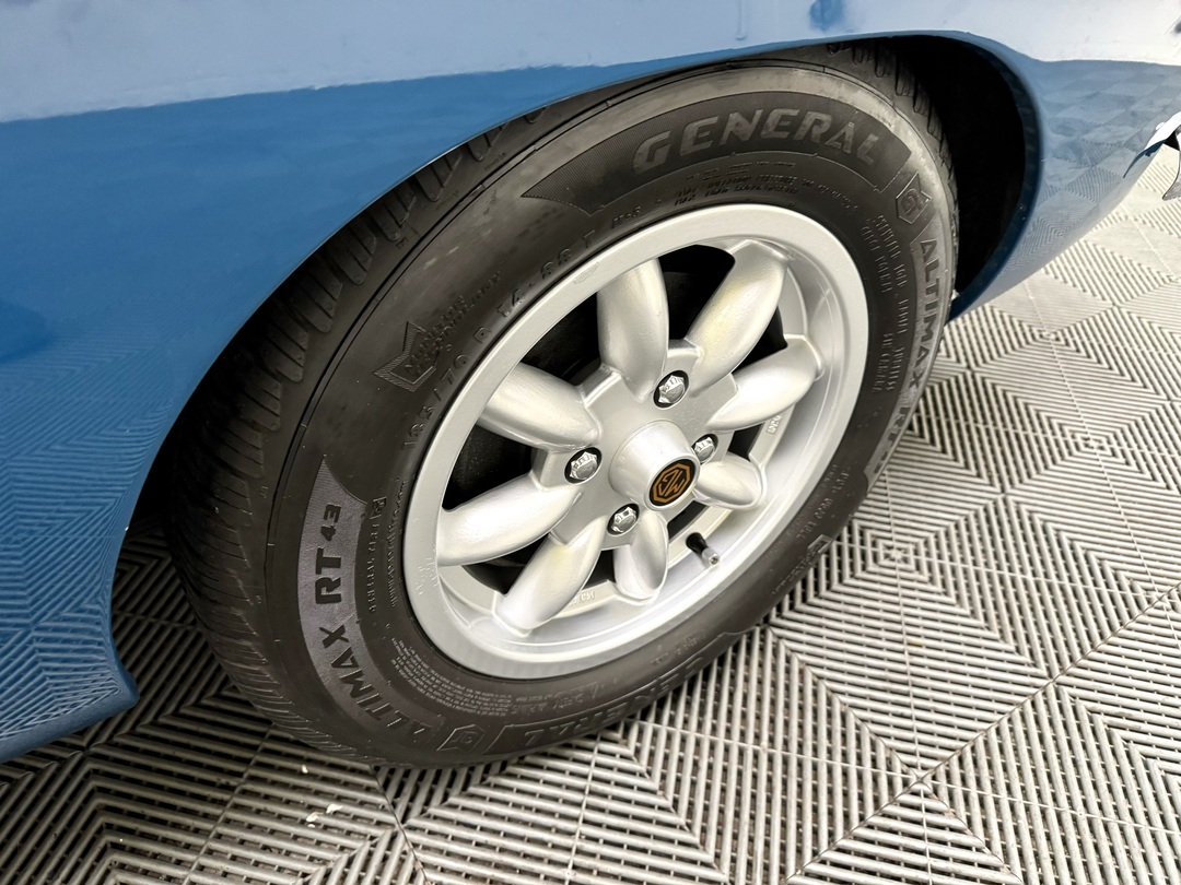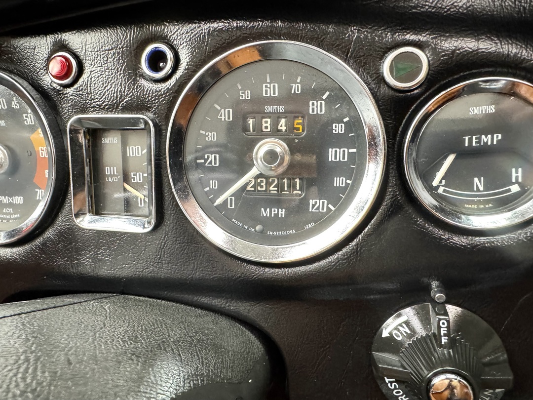 -Mechanically, the theme continues here with everything well attended to:  a strong engine, gearbox, clutch, brakes, suspension, tires, etc. It drives very well out on the road with no issues. Upgrades include 4-bolt 1.75 inch SU carb set with special intake manifold, alloy valve cover, electric fan, newer alternator.