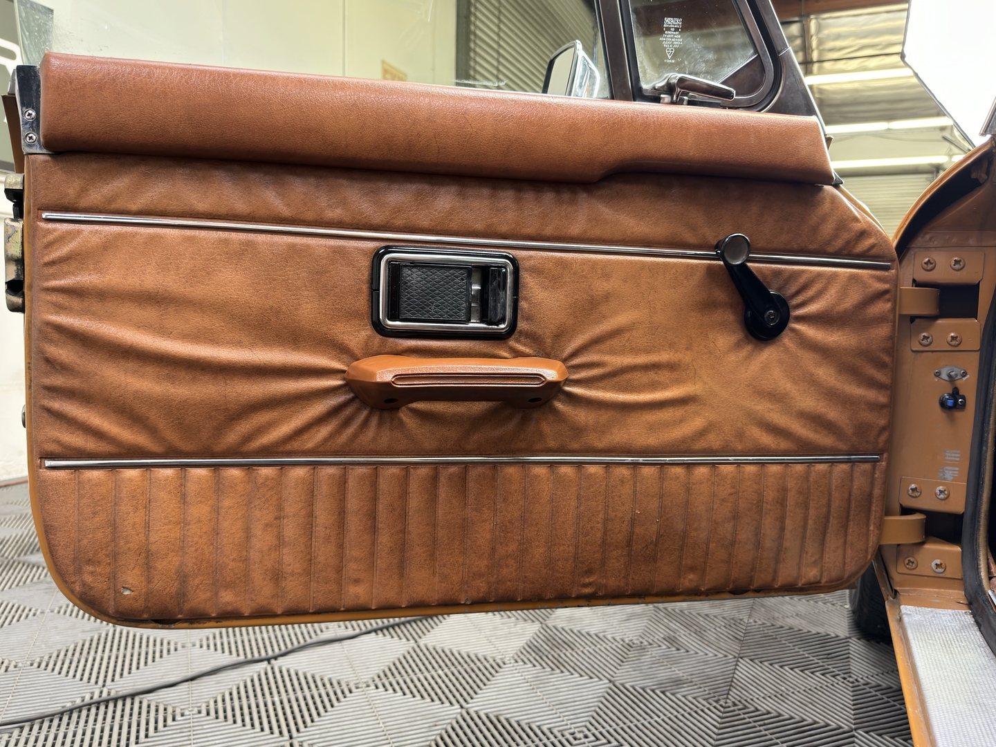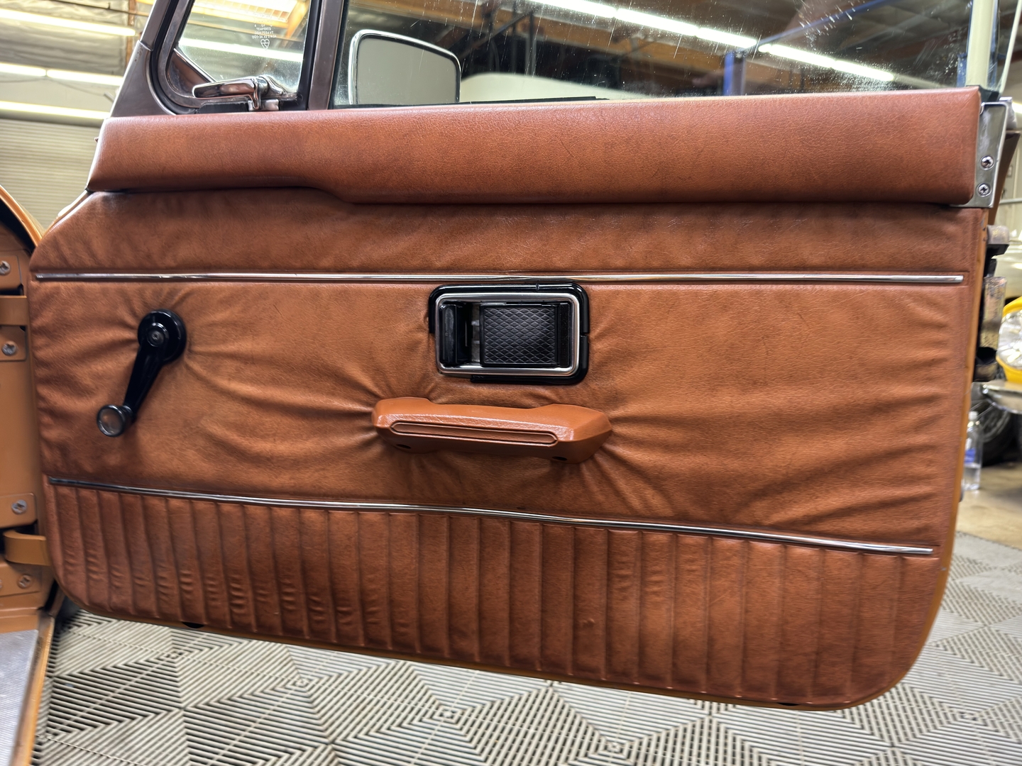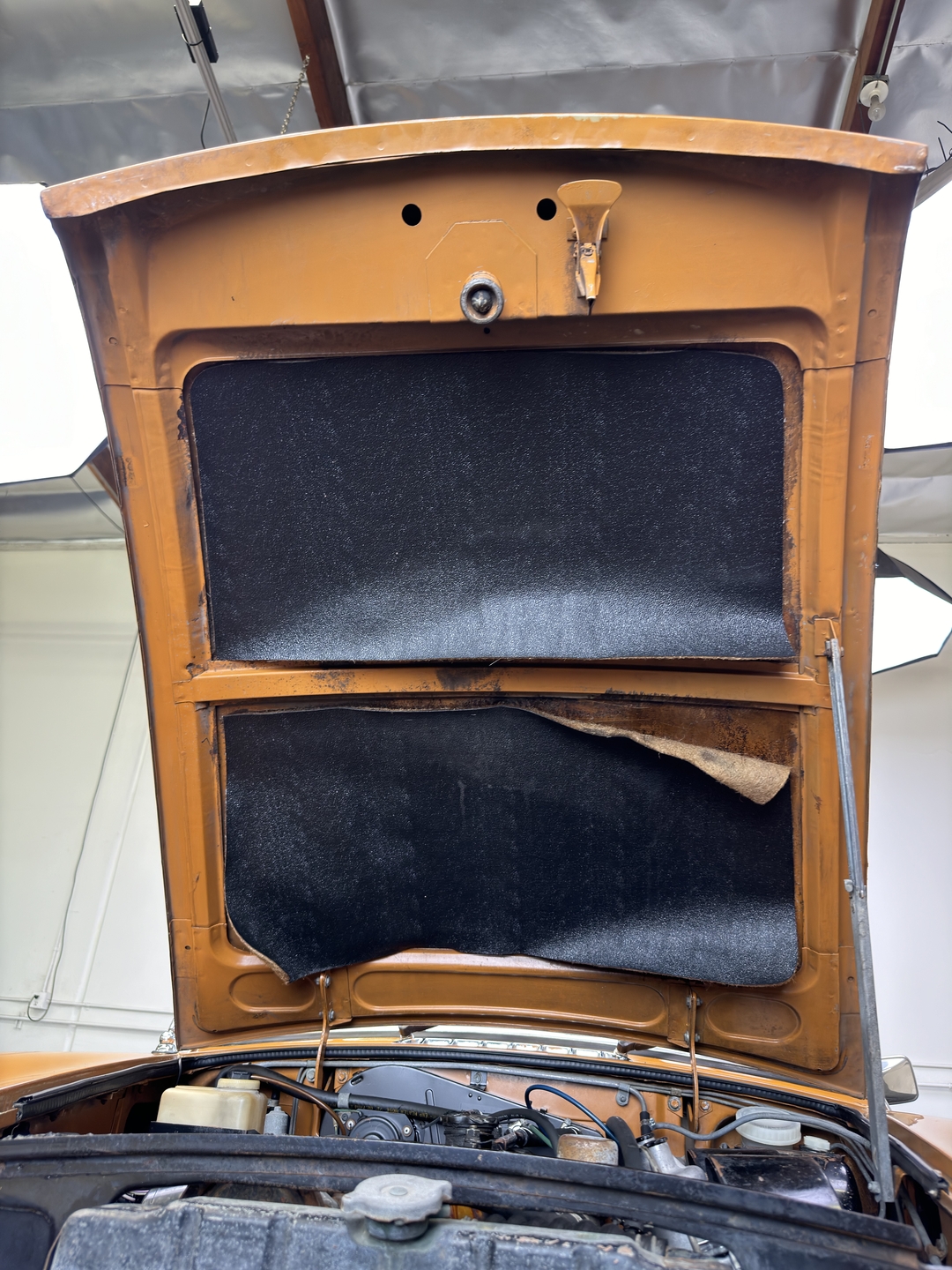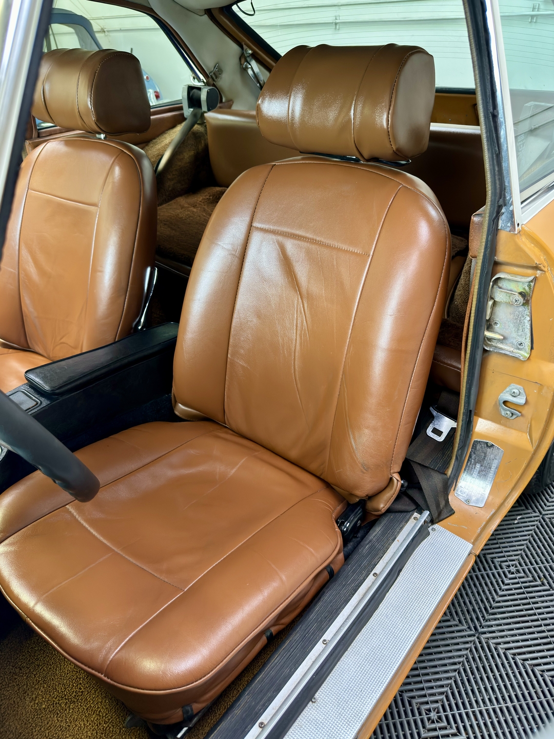 -Well preserved interior with retrimmed leather-like seats. Nice original headliner. Super original engine compartment.