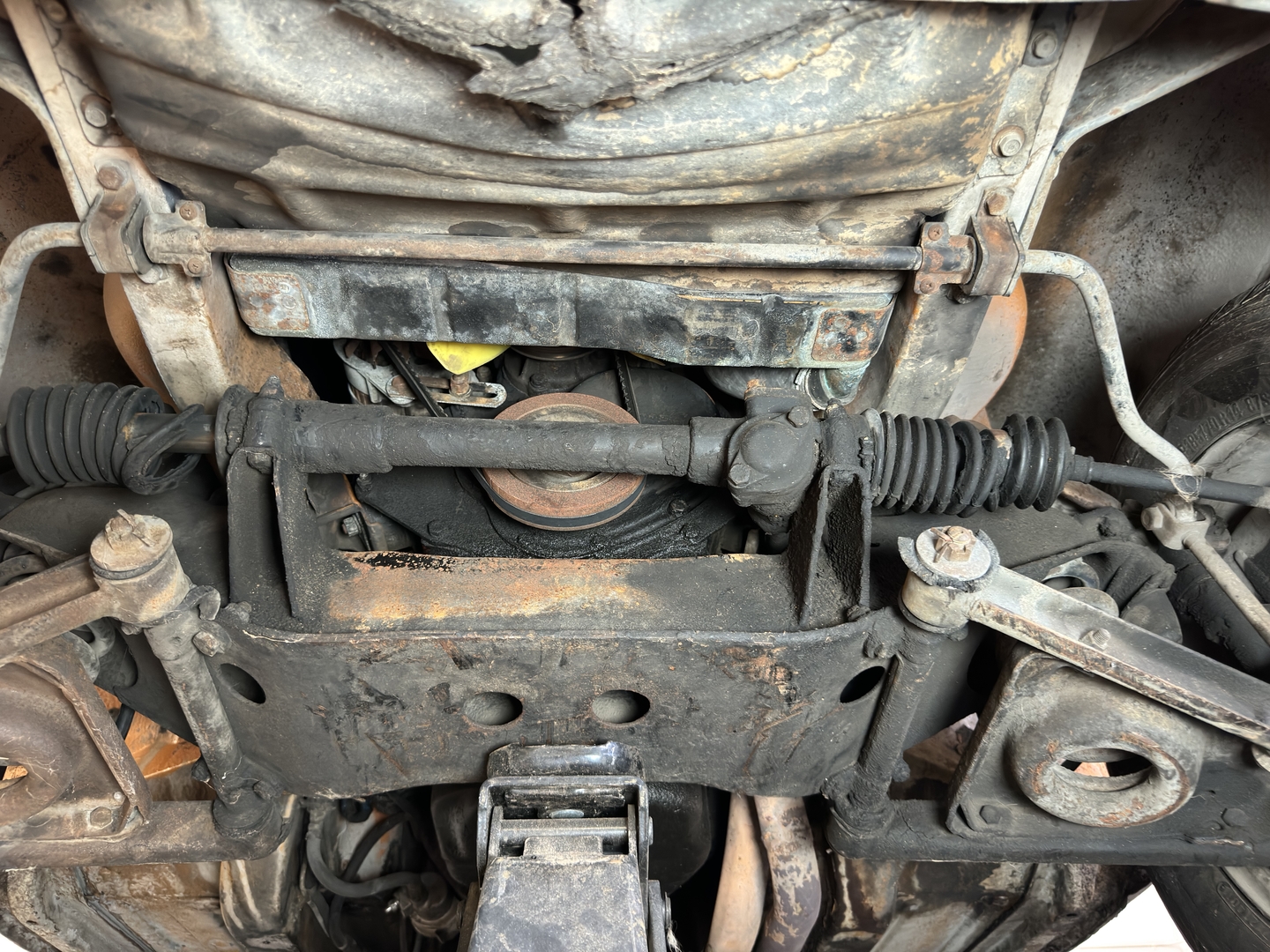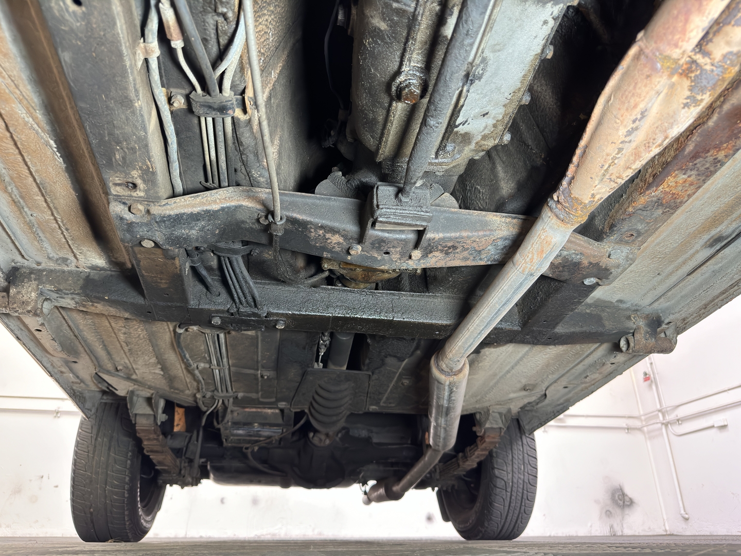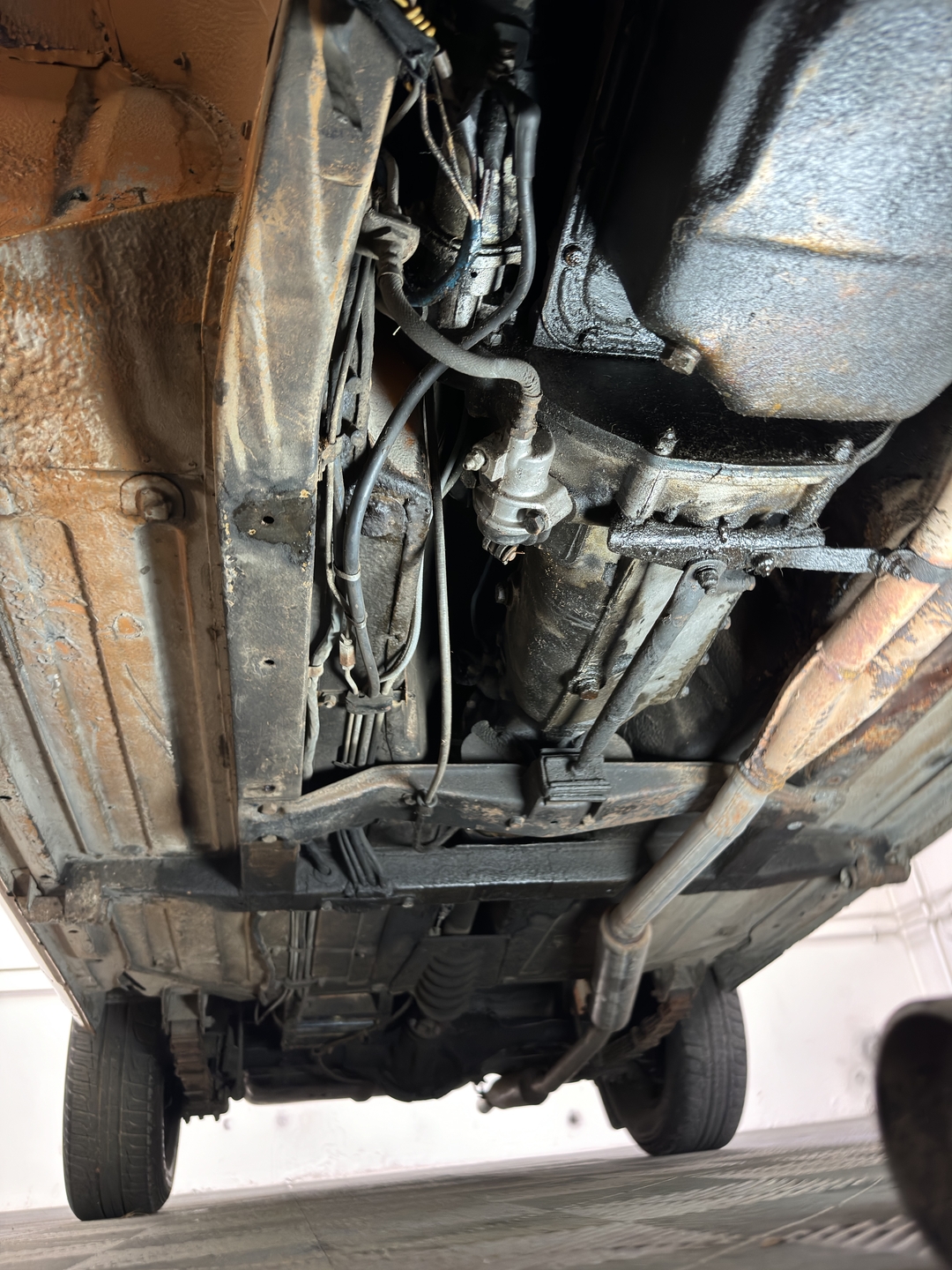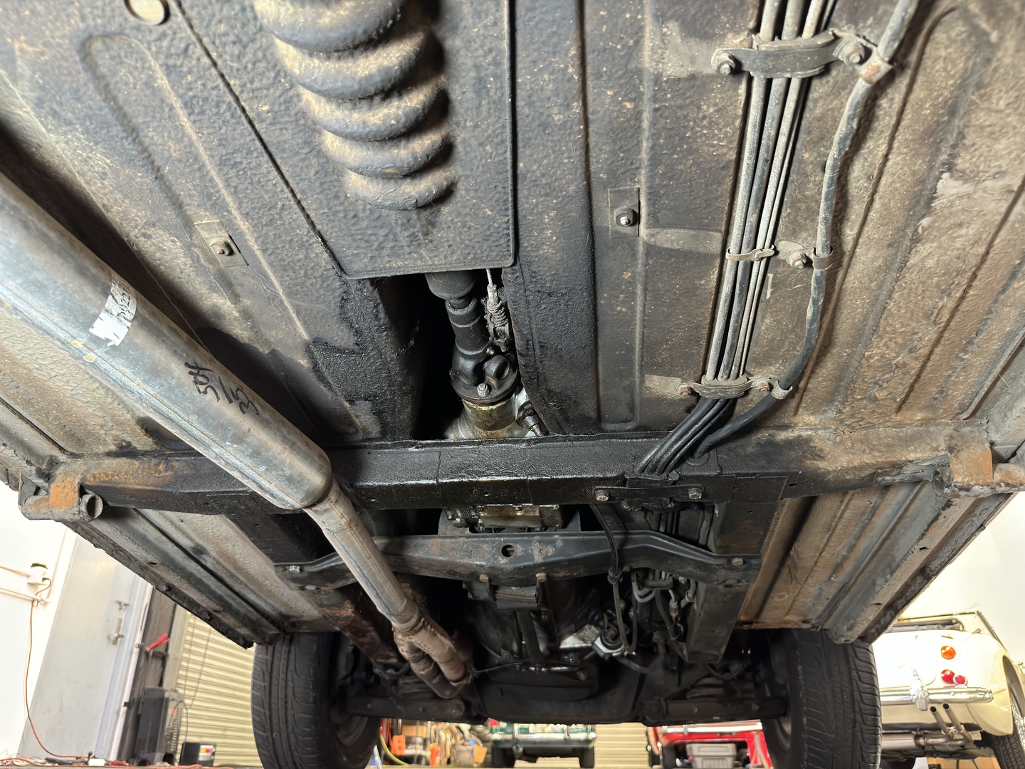 -Well preserved interior with retrimmed leather-like seats. Nice original headliner. Super original engine compartment.
