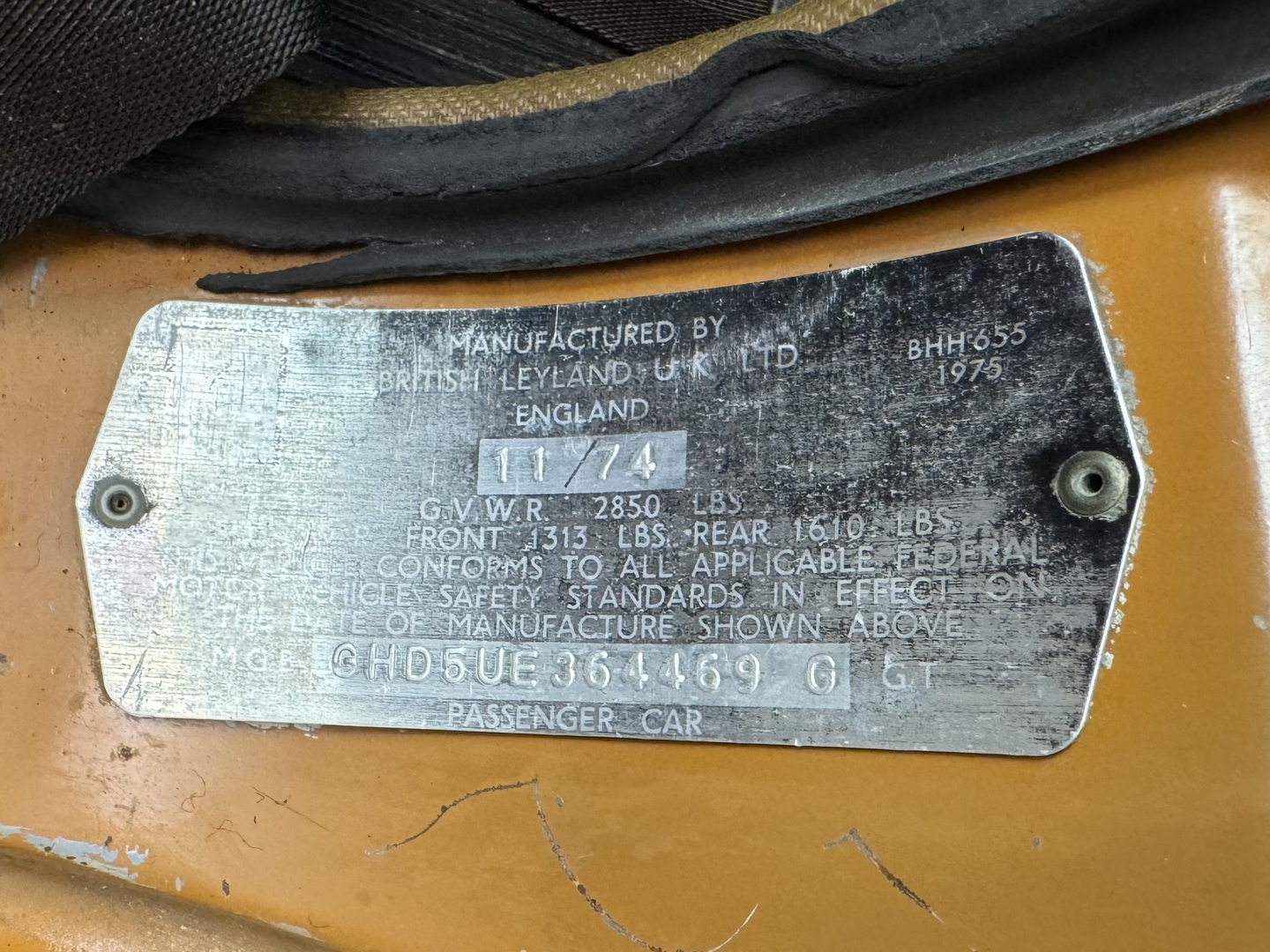 1974.5 MGB GT SPORTS COUPE. BRACKEN WITH AUTUMN LEAF TRIM. 4-SPEED WITH OVERDRIVE. ROSTYLE WHEELS. TINTED GLASS. ONE FAMILY OWNERSHIP FROM NEW. VERY GOOD DRIVER’S CONDITION CAR SHOWING 118,783 MILES. RUNS /DRIVES GREAT.
